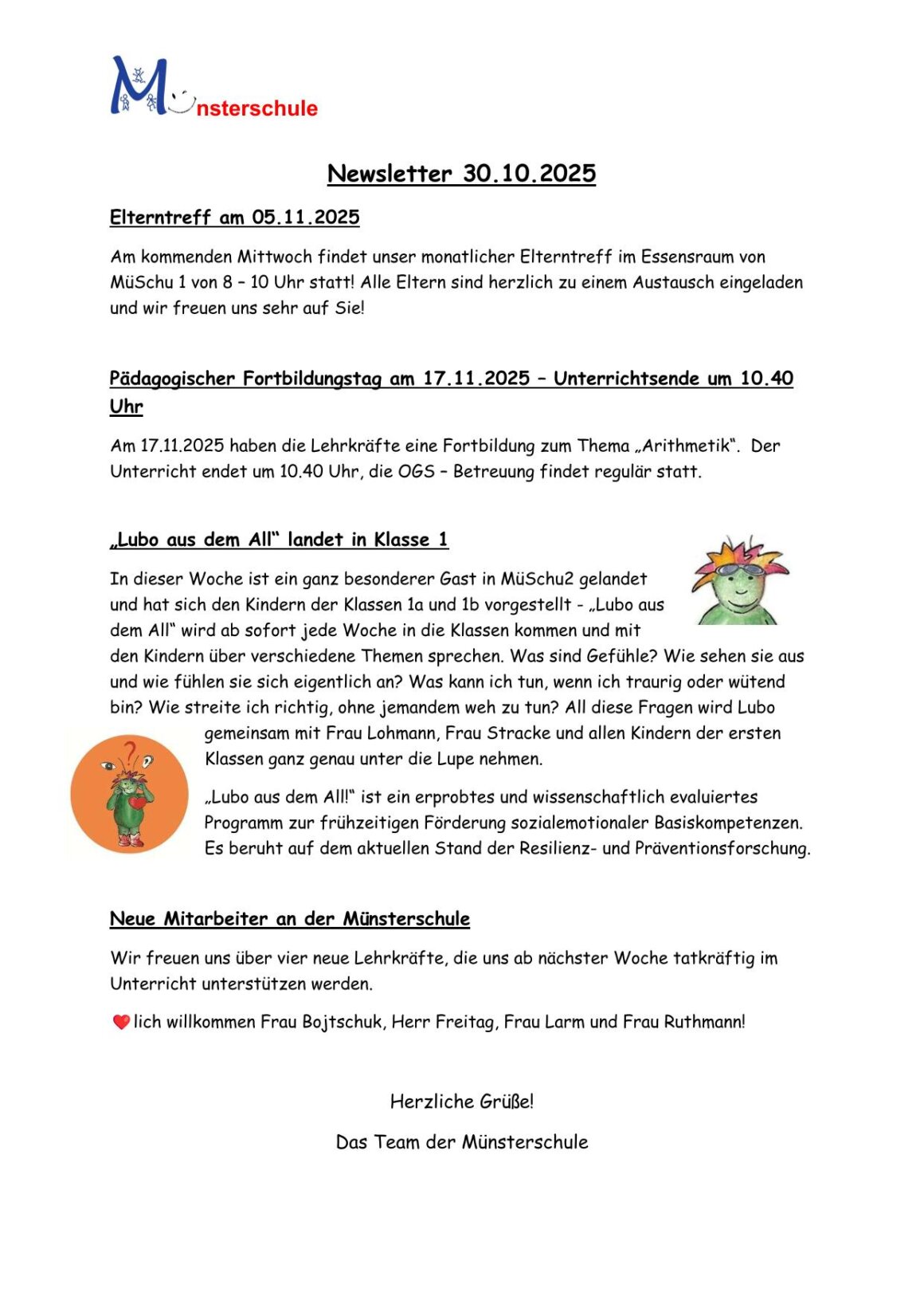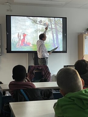 Am 21.11.2025 kam ein ganz besonderer Gast in die Münsterschule – der Essener Oberbürgermeister Thomas Kufen. Zum bundesweiten Vorlesetag las Herr Kufen den Kindern aus den Klassen 1a und 1b aus dem Buch „Ein komischer Vogel“ vor. In der Geschichte geht es darum, dass wir nicht alle gleich, aber jeder besonders und wertvoll ist. Herr Kufen nahm sich im Anschluss noch Zeit und beantwortete die Fragen der Kinder zu seiner Person und seinen Aufgaben als Oberhaupt der Stadt Essen.
