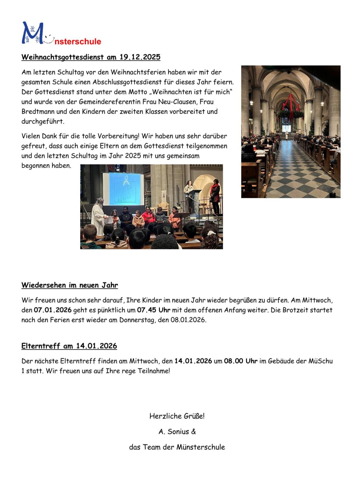 Am 21.11.2025 kam ein ganz besonderer Gast in die Münsterschule – der Essener Oberbürgermeister Thomas Kufen. Zum bundesweiten Vorlesetag las Herr Kufen den Kindern aus den Klassen 1a und 1b aus dem Buch „Ein komischer Vogel“ vor. In der Geschichte geht es darum, dass wir nicht alle gleich, aber jeder besonders und wertvoll ist. Herr Kufen nahm sich im Anschluss noch Zeit und beantwortete die Fragen der Kinder zu seiner Person und seinen Aufgaben als Oberhaupt der Stadt Essen.