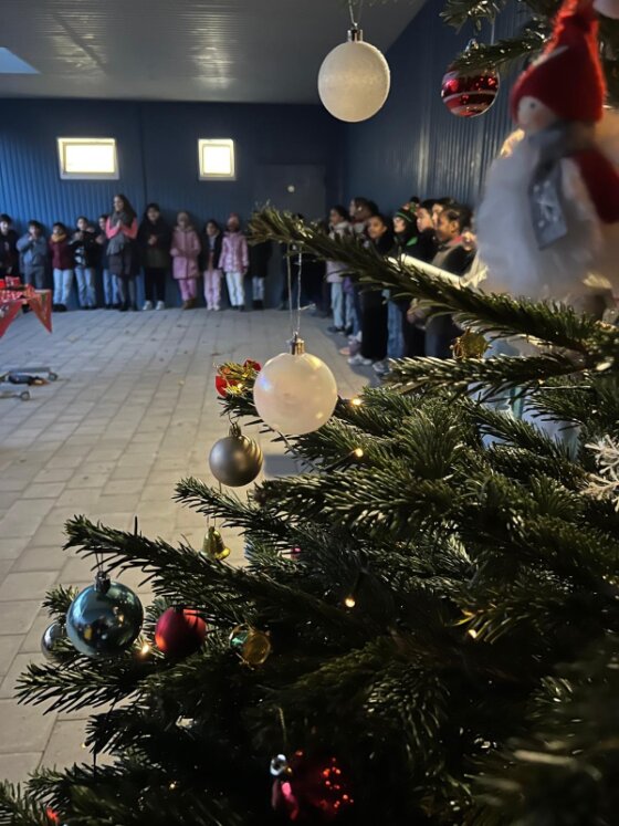 Auch in diesem Jahr gestalten wir die Adventszeit gemeinsam mit den Kindern besonders feierlich. Jeden Montagmorgen treffen sich die Klassen in Müschu1 und Müschu2 zu einem kleinen Adventssingen draußen auf dem Schulhof. In der Mitte steht unser Adventskranz, dessen Kerzen Woche für Woche ein Stück mehr Licht in die dunkle Jahreszeit bringen.