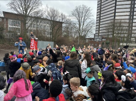 Ein besonderes Highlight war die große Polonaise: Die Kinder der Müschu 1 zogen fröhlich singend und tanzend zu Müschu 2, wo alle gemeinsam auf dem Schulhof weiterfeierten. Bei bester Stimmung wurde getanzt, gesungen und natürlich durften auch die Kamelle nicht fehlen! Ein unvergesslicher Tag voller Lachen, Bewegung und buntem Treiben – wir freuen uns schon auf das nächste Jahr!